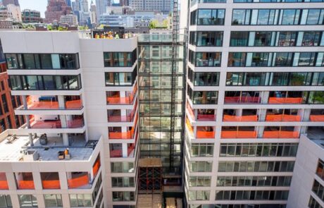 This project involved the extensive gut rehab and condo conversion of 450 Washington, a 300,000-square-foot development spanning 16 floors and featuring 176 units. The new condominium development is a full renovation of a former rental building, complete with new interior walls, contemporary layout configurations, floor-to-ceiling window replacement and a refinished façade. This development also features a 4,300-square-foot roof terrace with panoramic views over the Hudson River and an 8,000-square-foot courtyard.
